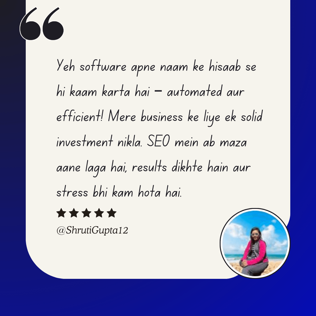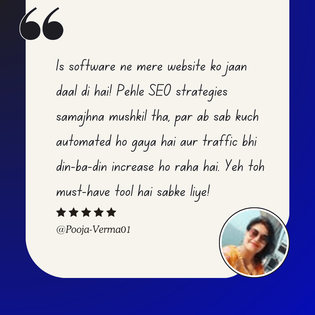 A: Our AI software automates SEO by analyzing your site for optimization opportunities, adapting to search algorithm changes, and resolving technical issues. It helps enhance content and manage backlinks, boosting your site's rankings and visibility.